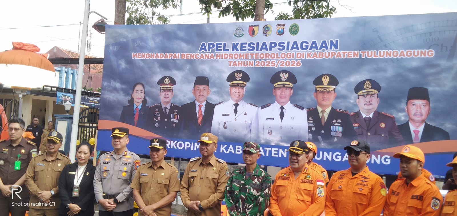 Dalam rangka memberikan tindakan preventif bencana dan dalam rangka menindaklanjuti peringatan dini BMKG mengenai datangnya musim hujan 2025/2026 lebih awal, Pemerintah Kabupaten Tulungagung melalui Badan Penanggulangan Bencana Daerah (BPBD) segera mengambil langkah cepat akan potensi bencana hidrometeorologi, mulai dari banjir di dataran rendah hingga ancaman tanah longsor di perbukitan, mendesak semua pihak untuk siaga, dengan menggelar “Apel Kesiapsiagaan Bencana”, Selasa (7/10/25)