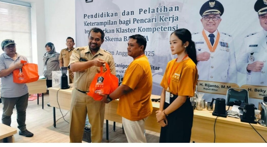 Dinas Tenaga Kerja (Disnaker) Kabupaten Blitar resmi menutup Pendidikan dan Pelatihan Keterampilan bagi Pencari Kerja berdasarkan Klaster Kompetensi Skema Barista, Senin (28/04/2025). Acara penutupan berlangsung di salah satu kafe di Kecamatan Kanigoro, Kabupaten Blitar.