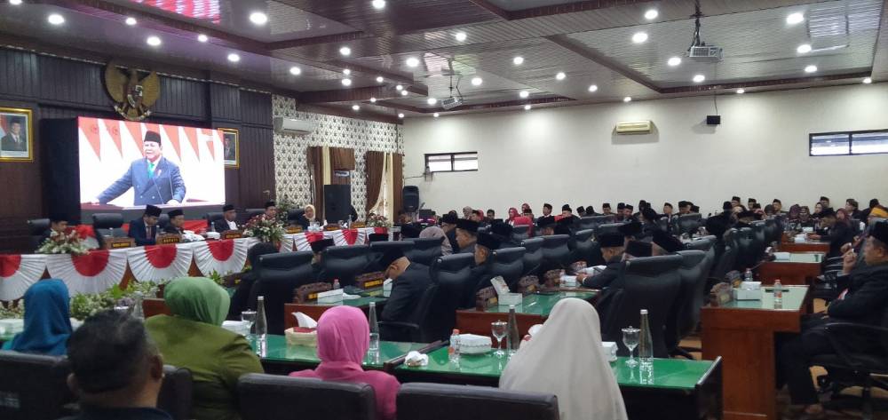 Bertempat di ruang sidang Paripurna DPRD Trenggalek, Bupati Mochamad Nur Arifin dan seluruh peserta sidang terlihat sangat khidmad mendengarkan pidato arah kebijakan Presiden Prabowo dalam peringatan HUT ke-80 Kemerdekaan RI. Mengawali pidatonya, Presiden Prabowo mengurai langsung keberhasilan presiden-presiden RI sebelumnya mulai dari Presiden Soekarno hingga Presiden Joko Widodo.