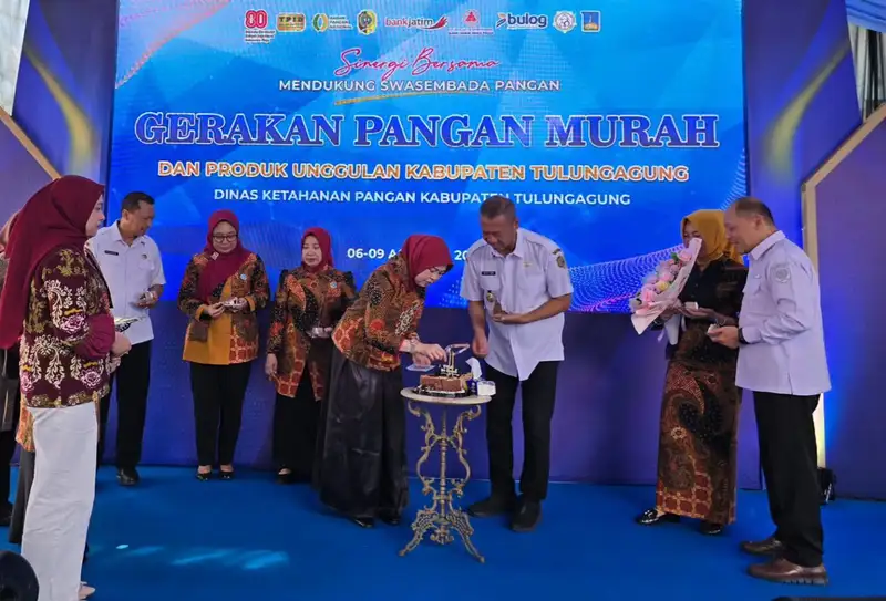 Ada momen haru dan penuh kebahagiaan di sela pembukaan Gerakan Pangan Murah dan Pameran Produk Unggulan Kabupaten Tulungagung Tahun 2025 dalam rangka menyambut Hari Ulang Tahun (HUT) Kemerdekaan RI ke-80 yang digelar di halaman Dinas Ketahanan Pangan (DKP) Kabupaten Tulungagung. Rabu (6/8/25)