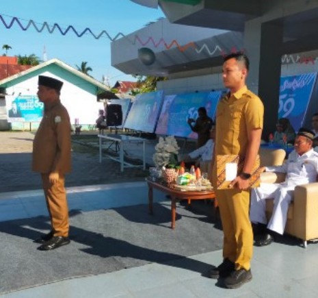 Kegiatan diawali dengan Upacara naikan bendera dan pemotongan nasi tumpang (Nasi kuning) HUT HKN ke 59 oleh pj Bupati Aceh Timur, Mahyuddin.