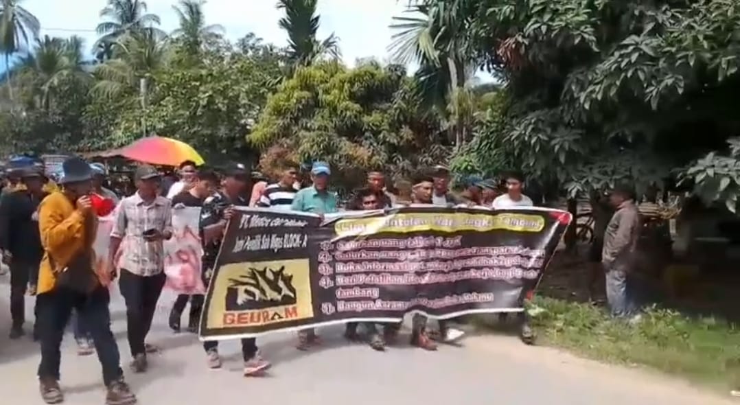 Setidaknya demikianlah bunyi yel – yel yang dinyanyikan ratusan masyarakat dari Kecamatan Julok dan Indra Makmur, Aceh Timur, yang tergabung dalam masyarakat lingkar tambang PT Medco, menggelar aksi demonstrasi di Simpang Kafe Apung, Gampong Ladang Baru, Kecamatan Julok, pada Selasa (4/11/2025)
